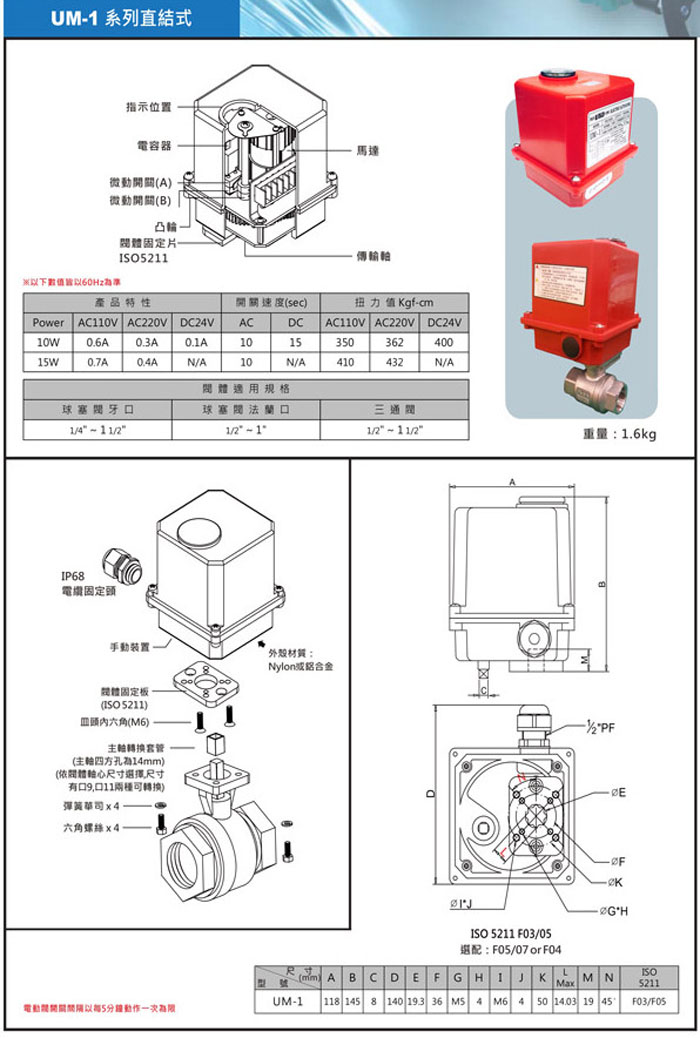 1. 直結(jié)式電動(dòng)馬達(dá)驅(qū)動(dòng)器需裝置在ISO 5211高平臺是的凡而或蝶閥上。