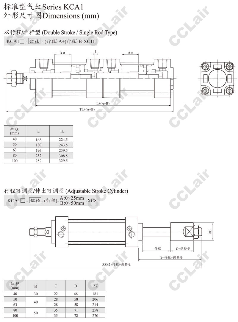 KCA1C40-25,KCA1C40-50,KCA1C40-75,KCA1C40-100,KCA1C40-125,CCLair KCA1C40-150,KCA1C40-175,KCA1G80-175,