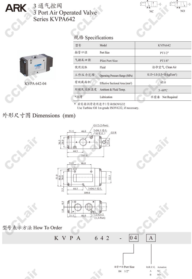 型號: KVPA642-04A,KVPA642-04B,ARK3通氣控閥