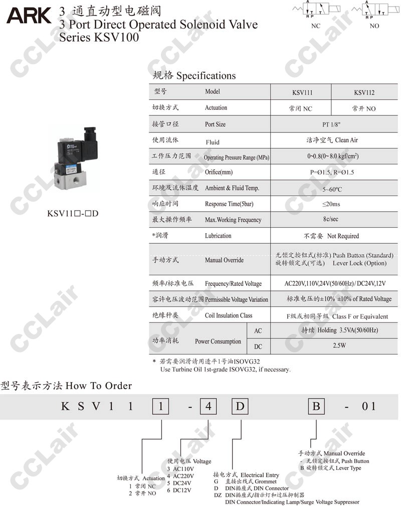 KSV111,KSV112,KSV111-3G-01,KSV111-3D-01,KSV111-3DZ-01,KSV111-4G-01,KSV111-4D-01,ARK3通直動型電磁閥 |