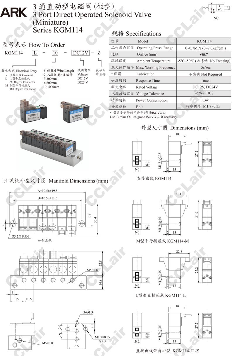 型號: KGM114,ARK3通直動型電磁閥