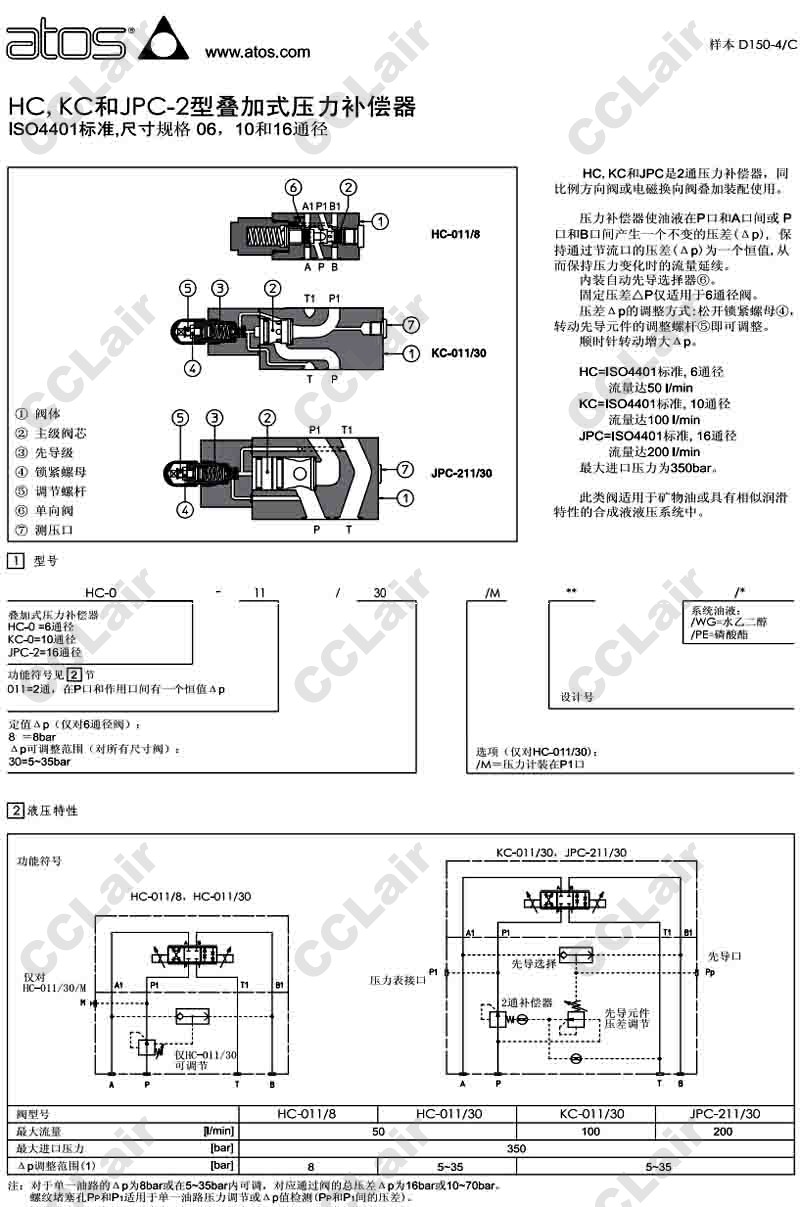 HC-011/8,HC-011/30/M,KC-011/30,JPC-211/30,阿托斯ATOS疊加式壓力補(bǔ)償器