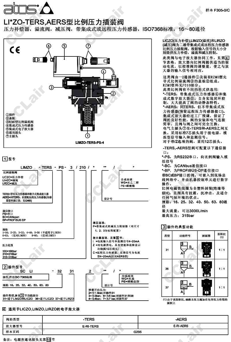 LIMZO-TERS,LIMZO-AERS,LIRZO-AERS-PS-4/210,LIMZO-TERS-BC-5/315,阿托斯ATOS比例壓力插裝閥