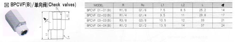 BPCVF01-01(B),BPCVF02-02(B),BPCVF03-03(B),BPCVF04-04(B),單向閥