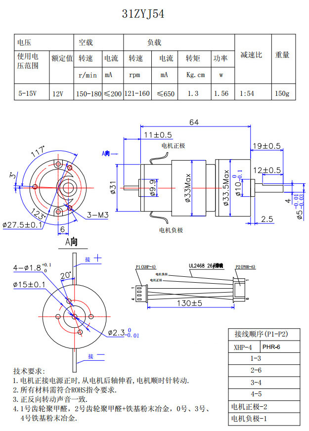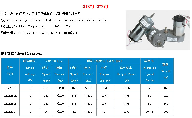31ZYJ54,27ZYJ50A,27ZYJ50B,27ZYJ297,直流減速電機