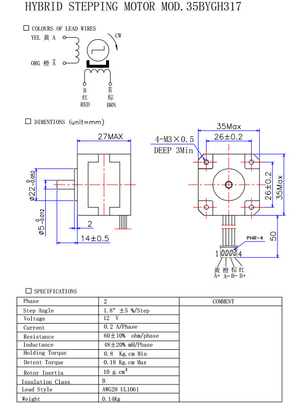 35BYGH317,35BYGH327,35BYGH603,35BYGH308,35BYGH326,混合式步進(jìn)電機(jī)