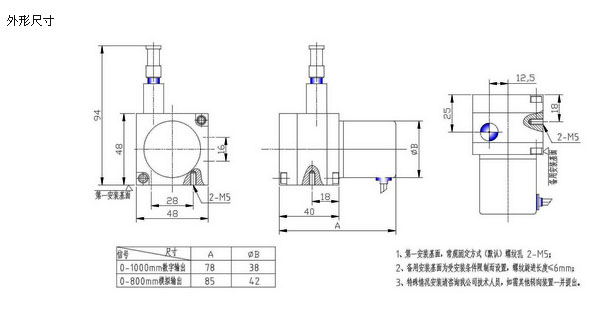 該傳感器屬于微型拉線(繩)位移傳感器,用來記錄測量長度0~1000mm的線性距離、模擬量型和數(shù)字量型輸出,標準化接口,可以堅固耐用特別適合短距離,高分辨率的場合,主要特點:安裝方便,設(shè)有備用安裝基準面,根據(jù)需要多種選擇;安裝空間小,安裝難度低;無需導(dǎo)向。機械公差不影響測量精度;廣泛應(yīng)用于直線導(dǎo)軌系統(tǒng),液壓氣缸系統(tǒng)、伸縮系統(tǒng),倉儲位置定位,壓力機械。造紙機械,紡織機械、金屬板材機械、印刷機械、水平控制儀、建筑機械等相關(guān)尺寸測量和位置控制;可外接PLC二次儀表,單片機等采集系統(tǒng)。