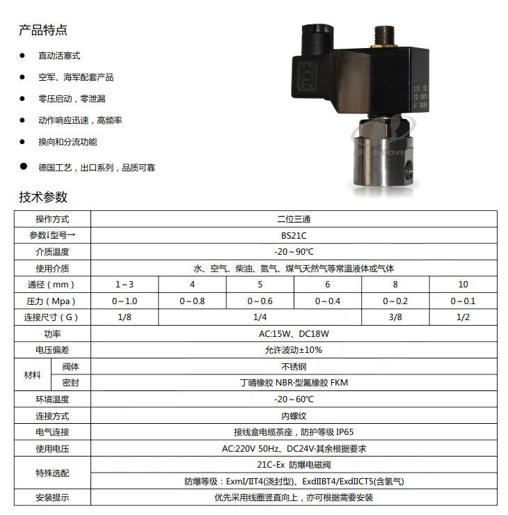 詳細(xì)信息 BS21C-DN1,BS21C-DN3,BS21C-DN4,BS21C-DN5,BS21C-DN6,BS21C-DN8,BS21C-DN10,二位三通黃銅電磁閥