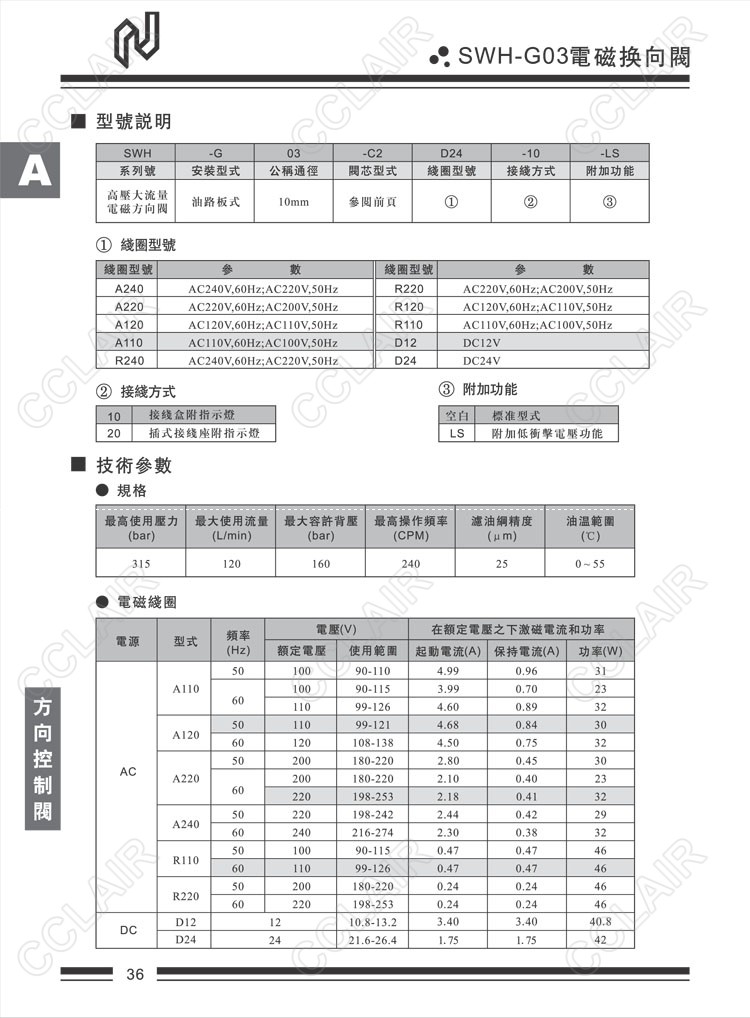 Northman臺灣北部精機,電磁換向閥SWH-G03-C2-A240-10,SWH-G03-C2M-A220-10-LS,SWH-G03-C21-A120-10,SWH-G03-C22M-A120-20,SWH-G03-C3-R110-20-LS,SWH-G03-C4-D12-20,SWH-G03-C40M-D24-20-LS, SWH-G03-C8S-A120-10,SWH-G03-C9S-D24-20-LS,SWH-G03-C6B-A120-10-LS