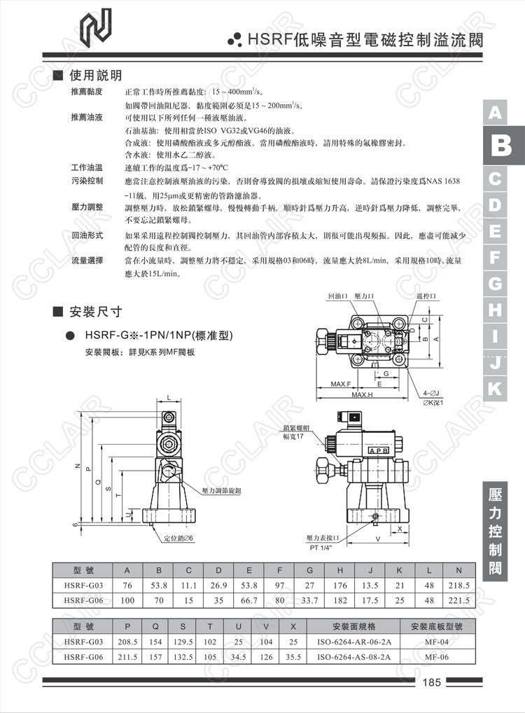Northman臺灣北部精機,低噪音型電磁控制溢流閥HSRF-G03-1PN-1-L-A110-10-30,HSRF-G03-1PN-1-L-R240-10-32,HSRF-G03-1NP-1-L-A240-10-32,HSRF-G03-1PN-2-R-R240-20-32,HSRF-G03-1NP-1-L-D24-10-30,HSRF-G06-1PN-1-R-R220-10-32,HSRF-G06-1NP-3-R-D12-20-32