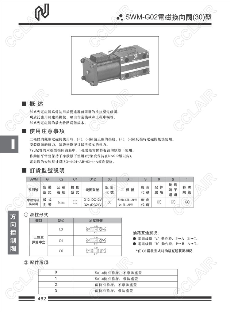 Northman臺灣北部精機,30型電磁換向閥SWM-G02-C3-D12-30-S001,SWM-G02-C3-D12-30-S011,SWM-G02-C3-D12-30-D-S001,SWM-G02-C3-D12-30-D-S011,SWM-G02-C3-D24-30-D-S30-D1,SWM-G02-C3-D24-30-D-S311,SWM-G02-C6-D24-30-D-S30-D1
