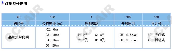 MC-02P-05-30,MC-02A-50-40,MC-03T-50-30,MC-03B-50-40,疊加式單向閥