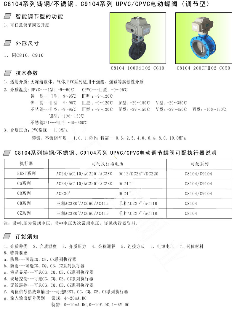 C8104-50,C8104-65,C8104-80,C8104-100,C8104-125,C8104-150,C8104-200,電動調(diào)節(jié)蝶閥