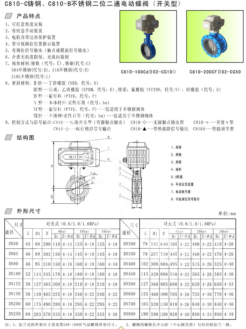 C810-50,C810-65,C810-80,C810-100,C810-125,C810-150,不銹鋼電動蝶閥