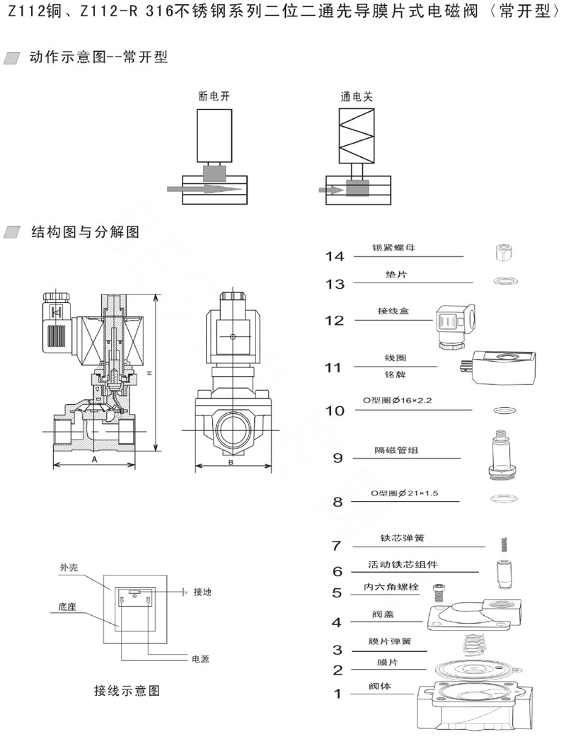 Z112-2.5R,Z112-03R,Z112-05R,Z112-06R,Z112-25RF,Z112-32RF,不銹鋼先導(dǎo)膜片式電磁閥