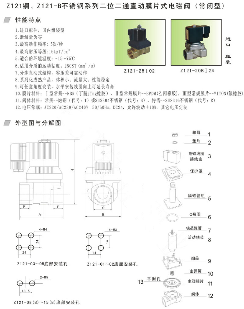 詳細信息 Z121-01,Z121-02,Z121-03,Z121-04,Z121-05,Z121-06,Z121-08,直動活塞式電磁閥