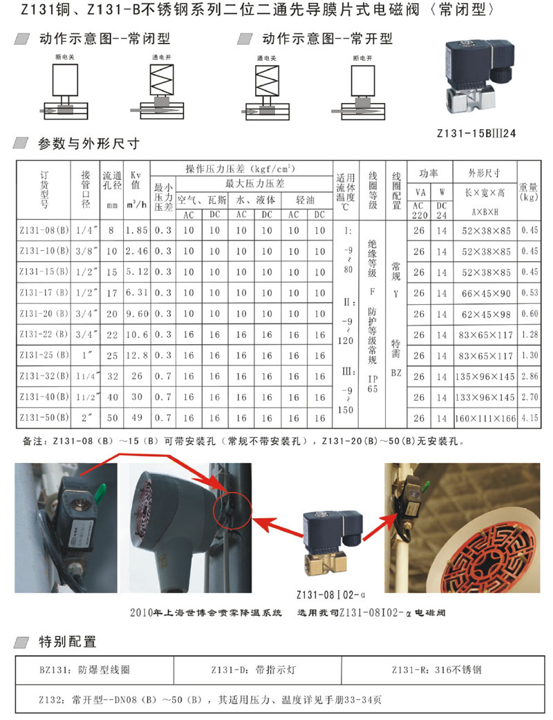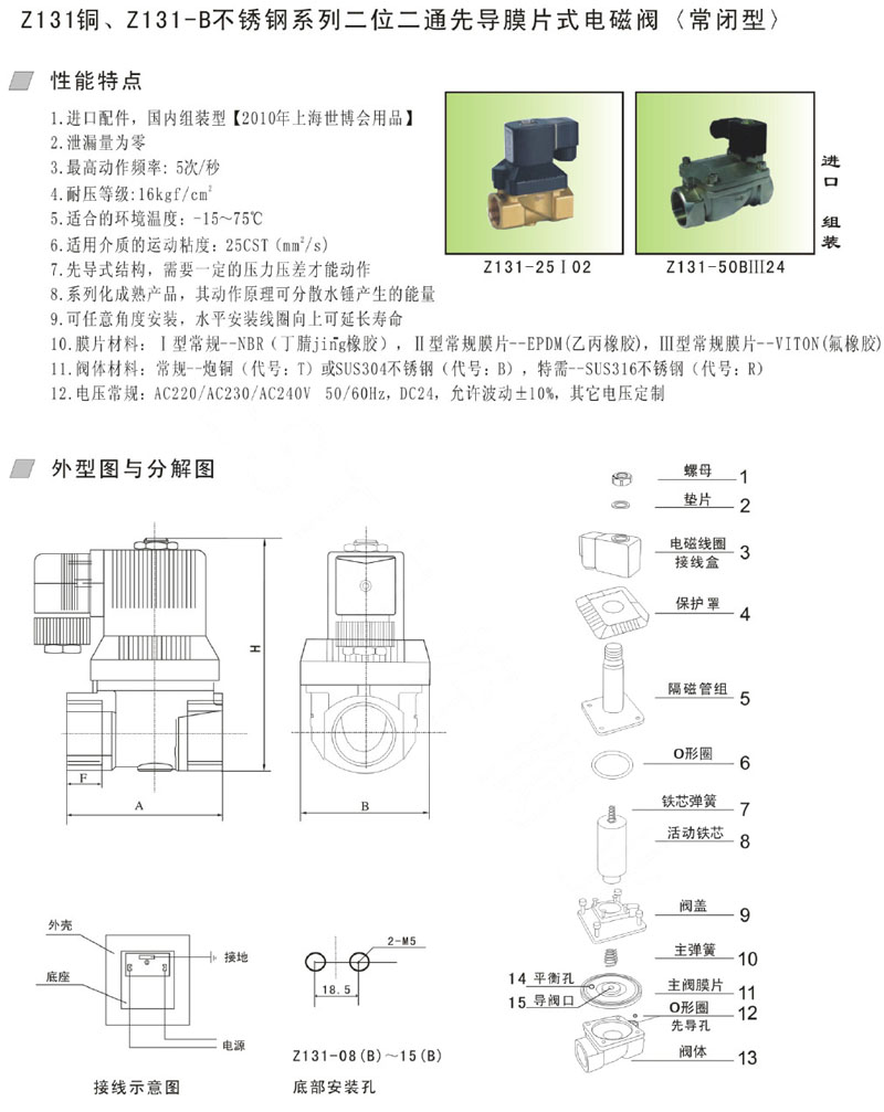 詳細(xì)信息 Z131-08,Z131-10,Z131-15,Z131-17,Z131-20B,Z131-22B,Z131-32B,先導(dǎo)膜片式電磁閥