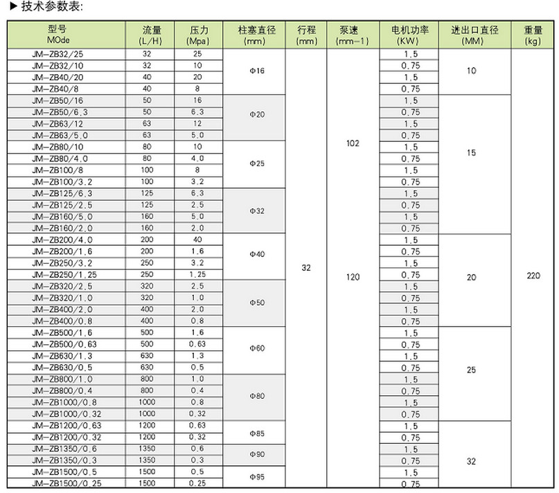 JM-ZB-125/2.5,JM-ZB-160/5.0,JM-ZB-160/2.0,JM-ZB-200/4.0,JM-ZB-250/1.6,JM-ZB-250/3.2,