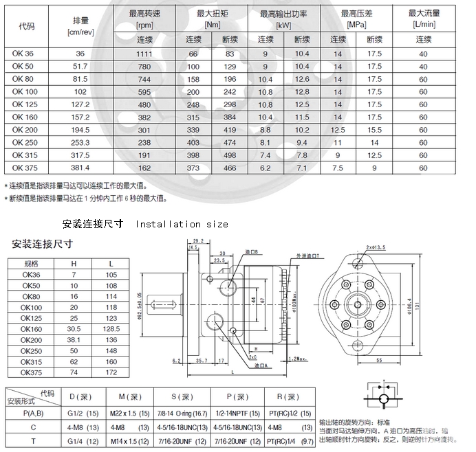 OK36,OK50,OK80,OK100,OK125,OK160,OK200,OK250,OK315,OK375,blince擺線液壓馬達