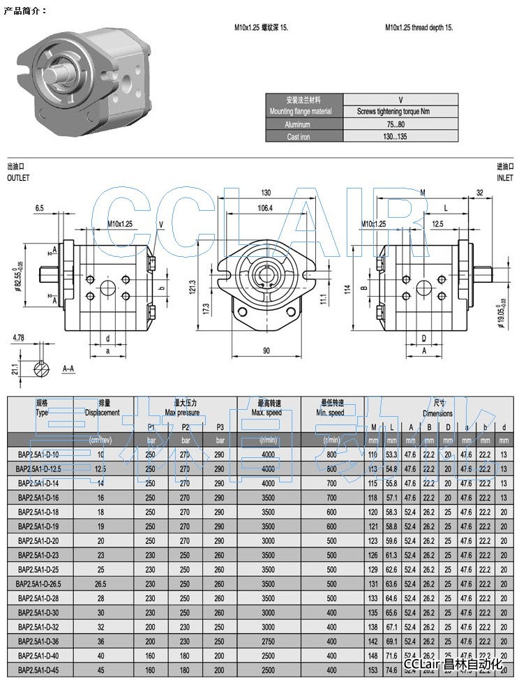 詳細(xì)信息 BAP2.5A1-D-10,BAP2.5A1-D-12.5,BAP2.5A1-D-14,齒輪泵
