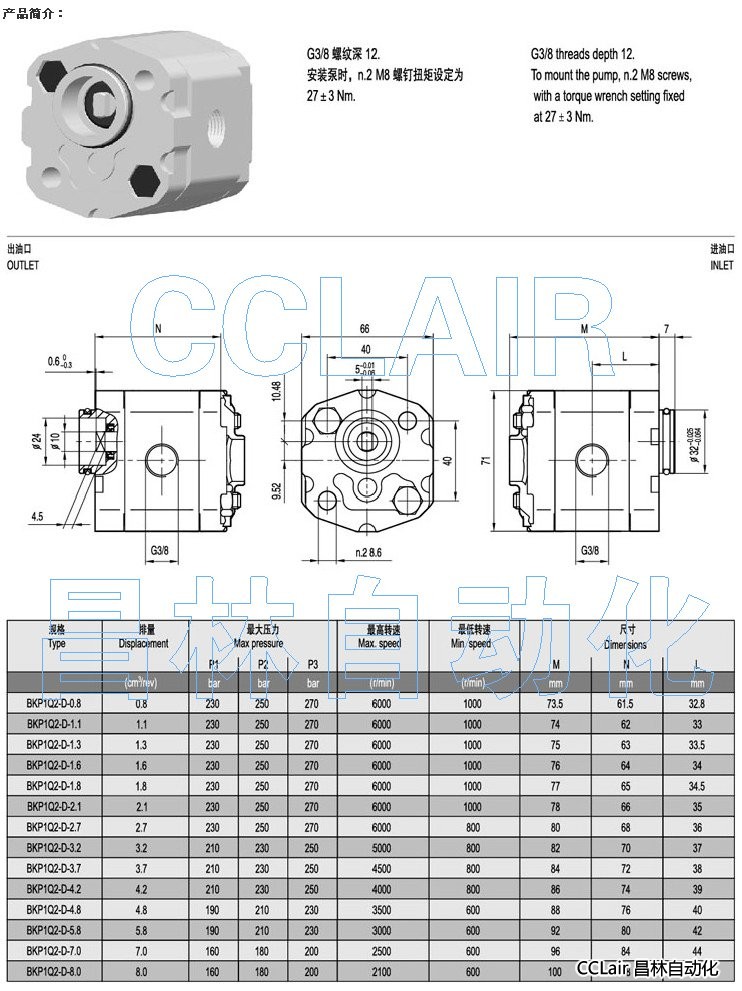 BKP1Q2-D-0.8,BKP1Q2-D-1.1,BKP1Q2-D-1.3,齒輪泵