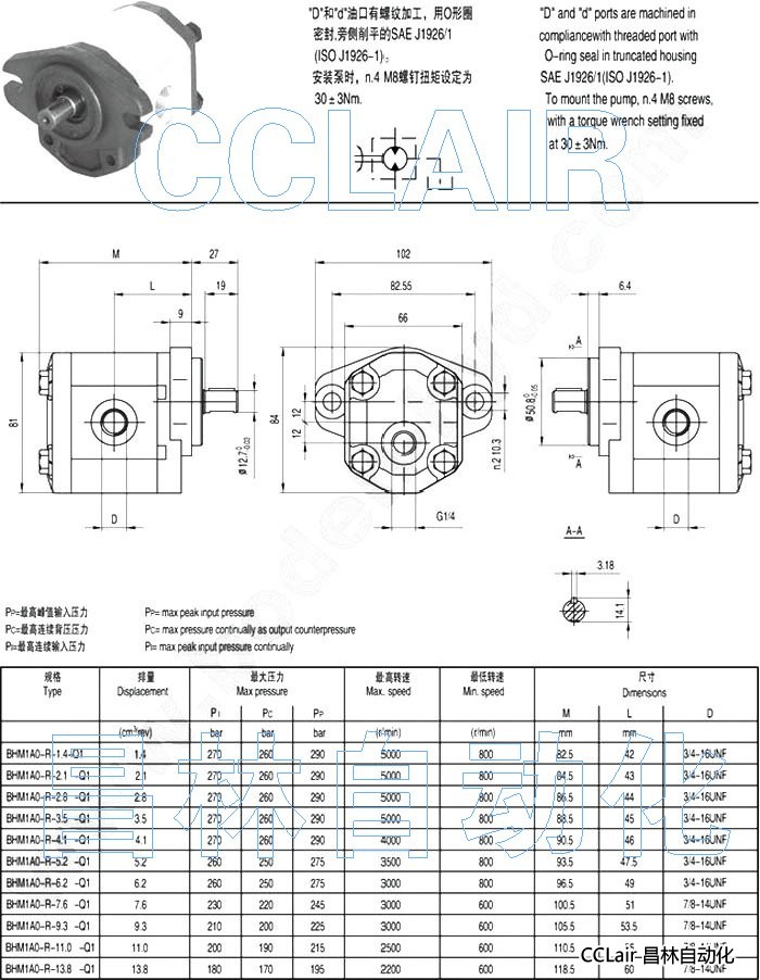 BHM1A0-R-1.4-Q1,BHM1A0-R-2.1-Q1,BHM1A0-R-2.8-Q1,BHM1A0-R-3.5-Q1,齒輪泵