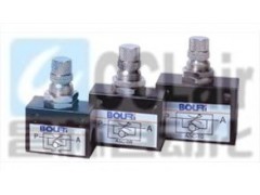 | 單向型流量控制閥,在氣路中調(diào)節(jié)壓縮空氣的流量,氣源正向流動(dòng)時(shí)節(jié)流,反向流動(dòng)時(shí)不發(fā)生節(jié)流,以改變氣缸等執(zhí)行元件的單向運(yùn)動(dòng)速度。 |