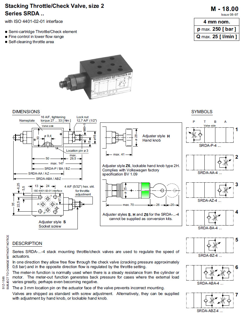 SRDA-AZ,SRDA-PZ,SRDA-BZ,SRDA-ABZ,SRDA-AA,RDA-PA,SRDA-BA,SRDA-ABA,Bucher疊加閥