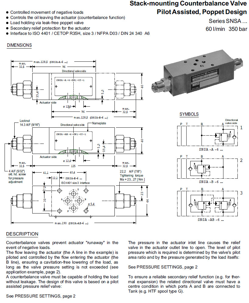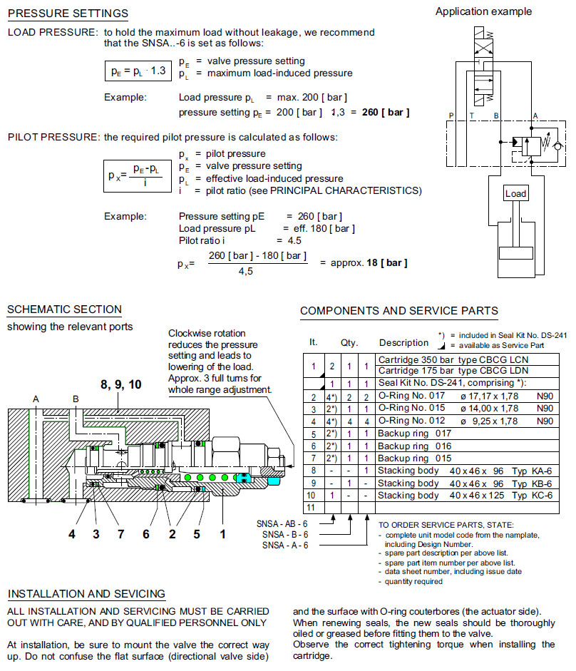 SNSA-AB-6-SN1-03,SNSA-A-6-SM1-03,SNSA-B-6-SM2-03,SNSA-AB-6-SN2-03,Bucher疊加閥