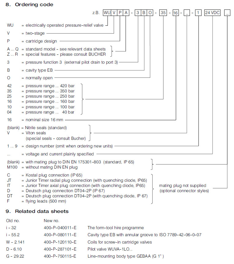 詳細信息 WUVPA-3BO-04-16-1,WUVPA-3BO-10-16-1,WUVPA-3BO-25-16-1,Bucher溢流閥
