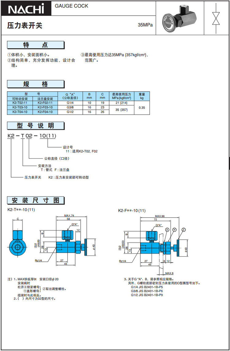 K2-T02-11,K2-T03-10,K2-T04-10,K2-F02-11,K2-F03-10,K2-F04-10,NACHI壓力表開(kāi)關(guān)