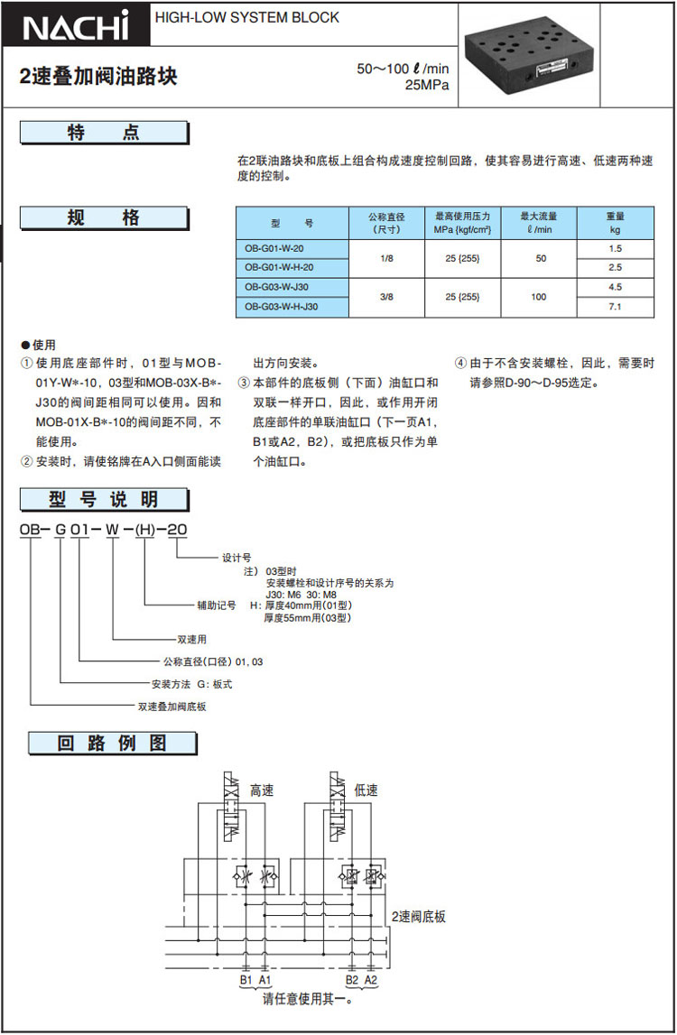 OB-G01-W-20,OB-G01-W-H-20,OB-G03-W-J30,OB-G03-W-H-J30,NACHI2速疊加閥油路塊
