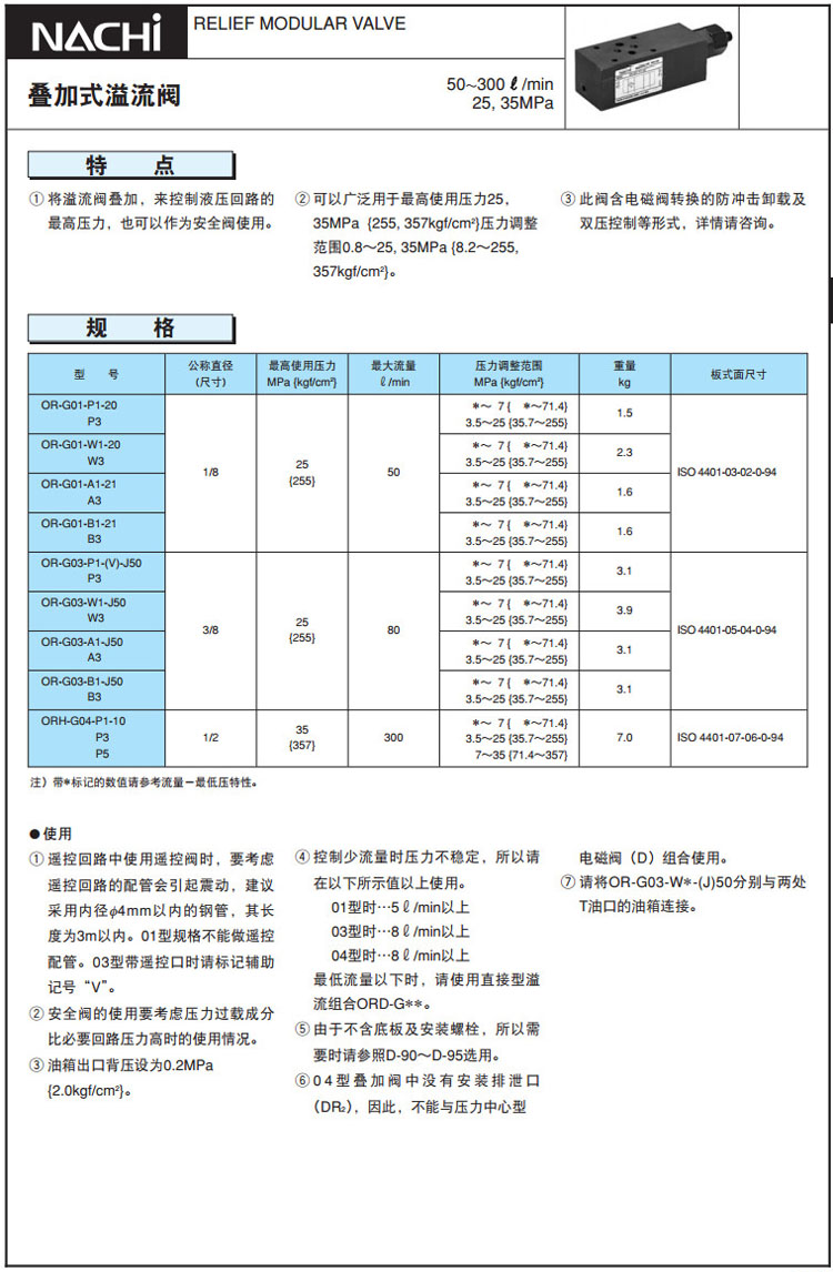 詳細信息 OR-G01,OR-G03,ORH-G04,OR-G01-P1-20,ORH-G04-P5-10,OR-G03-P3-V-J50,NACHI疊加式溢流閥