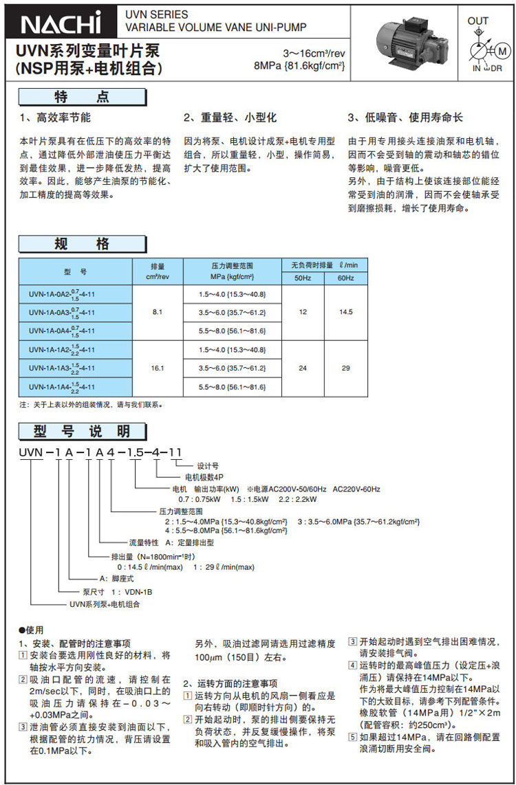 詳細(xì)信息 UVN-1A-0A2,UVN-1A-0A3,UVN-1A-0A4,UVN-1A-1A2,UVN-1A-1A3,UVN-1A-1A4,NACHI變量葉片泵