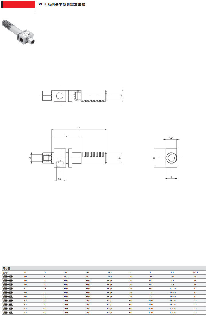 VEB-05H,VEB-07H,VEB-10H,VEB-15L,VEB-20L,VEB-25L,camozzi基本型真空發(fā)生器