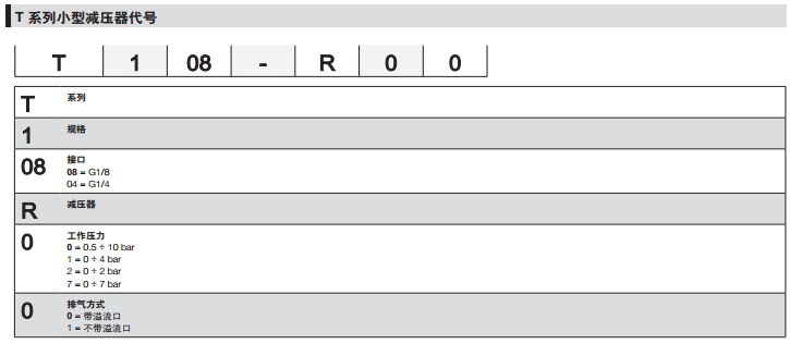 詳細(xì)信息 T108-R00,T108-R01,T108-R10,T104-R11,T104-R20,T104-R70,camozzi小型減壓器