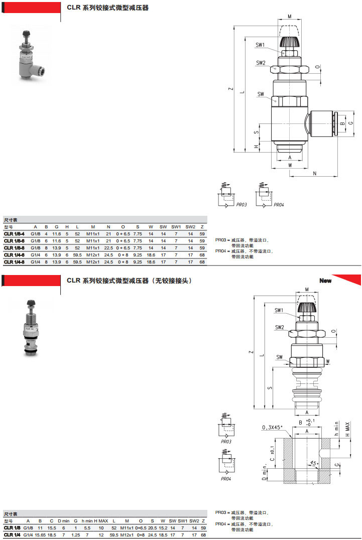 CLR1/8-01-4,CLR1/8-01-6,CLR1/8-01-8,CLR1/4-01-4,CLR1/4-01-6,CLR1/4-01-8,camozzi鉸接式微型減壓器