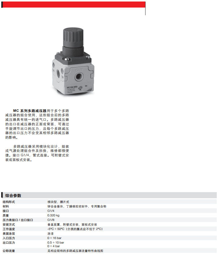 MC104-M00,MC104-M01,MC104-M11,MC104-M25,MC104-M7camozzi多路減壓器