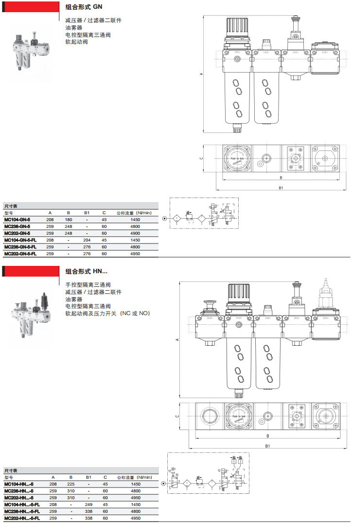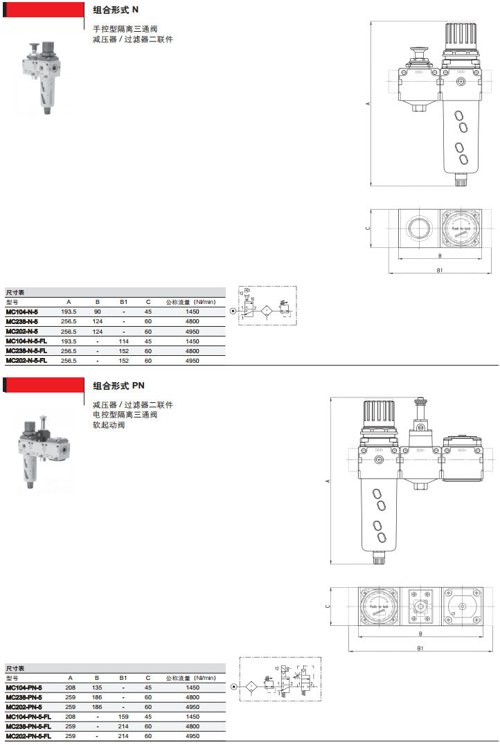 MC104-C-5,MC238-E-5,MC202-HNA-5,MC104-N-5,MC238-QN-5,MC202-U-5,camozzi氣源處理組合件