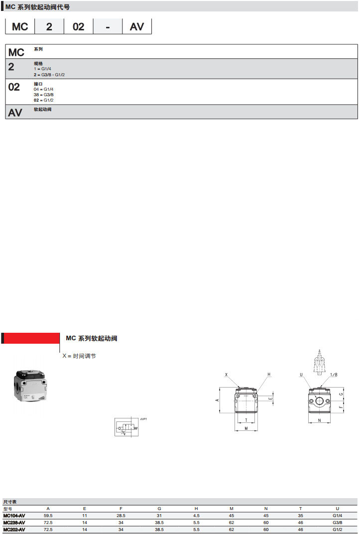 MC104-AV,MC138-AV,MC102-AV,MC204-AV,MC238-AV,MC202-AV,camozzi軟起動閥