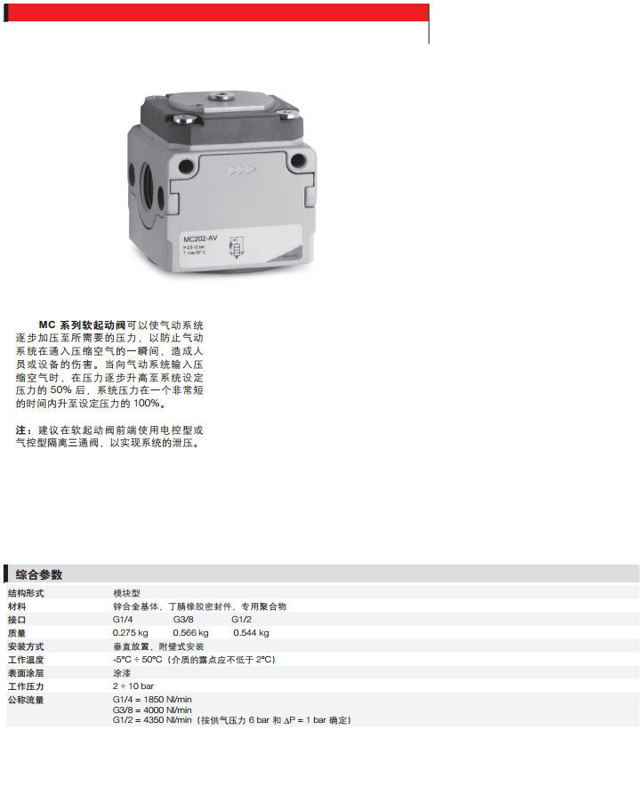 詳細信息 MC104-AV,MC138-AV,MC102-AV,MC204-AV,MC238-AV,MC202-AV,camozzi軟起動閥