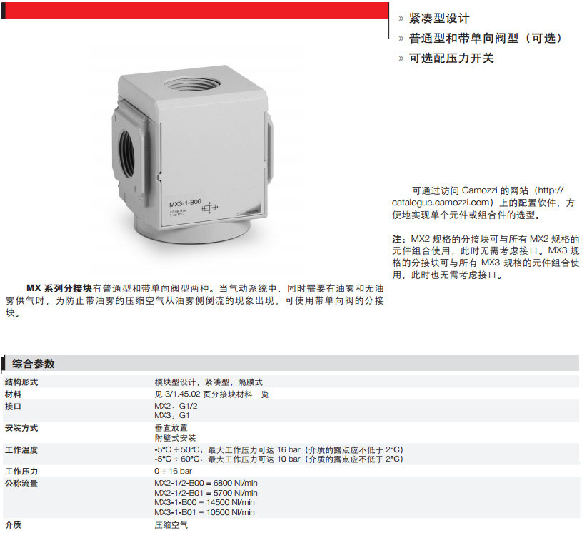 MX2-1/2-B00,MX2-1/2-B01,MX2-1-B00,MX3-1-B00,MX3-1-B01,camozzi分氣塊