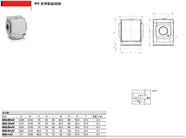 MX2-3/8-AV,MX2-1/2-AV,MX2-3/4-AV,MX3-3/4-AV,camozzi軟起動閥