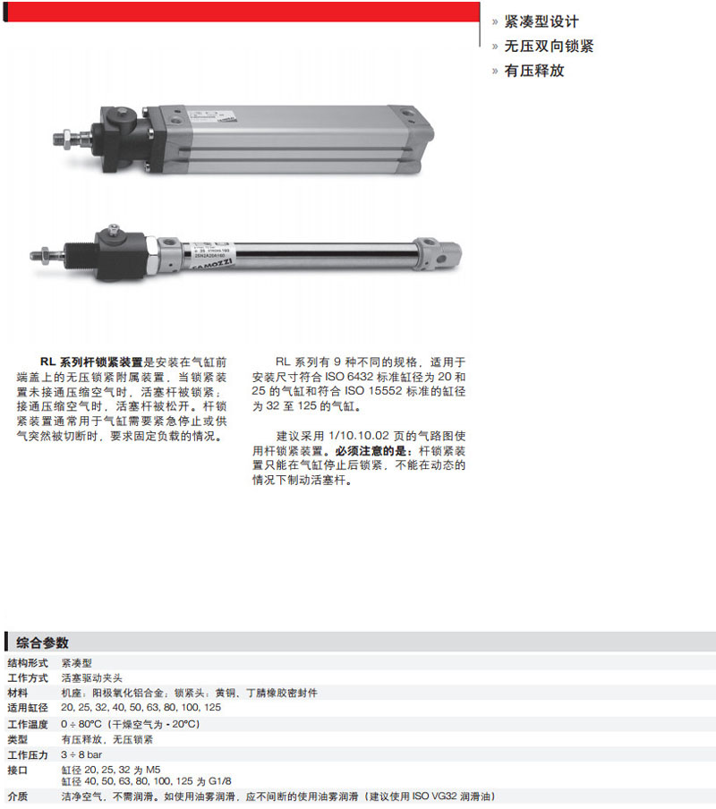 RLC-24-20,RLC-41-25,RLB-24-32,RLB-41-40,RLC-24-50,RLC-41-63,camozzi桿鎖緊裝置