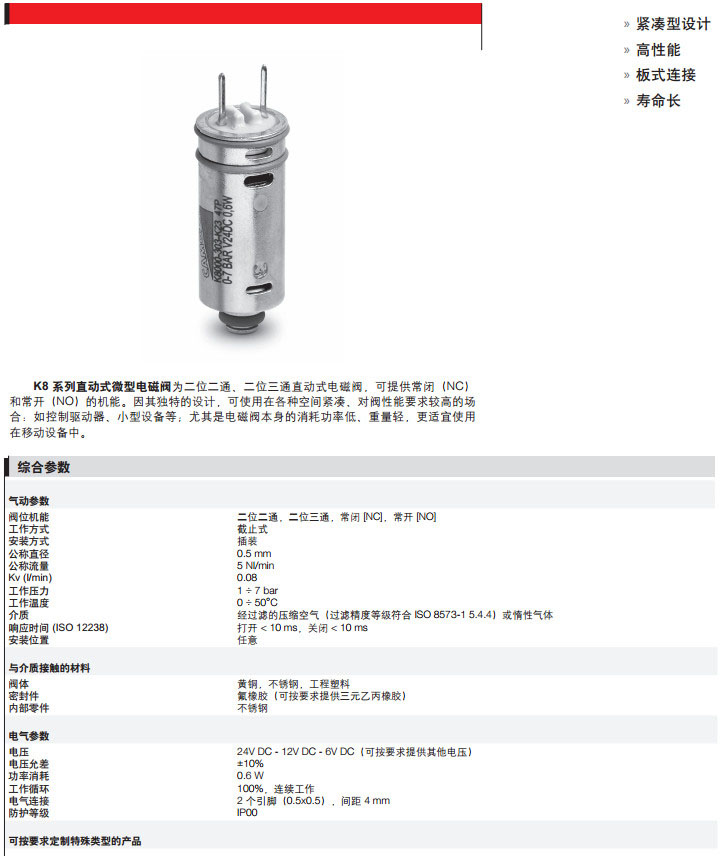 您當(dāng)前的位置:首頁 » 供應(yīng)產(chǎn)品 » K8000-003-K21,K8000-303-K22,K8000-403-K23,camozzi直動(dòng)式微型電磁閥