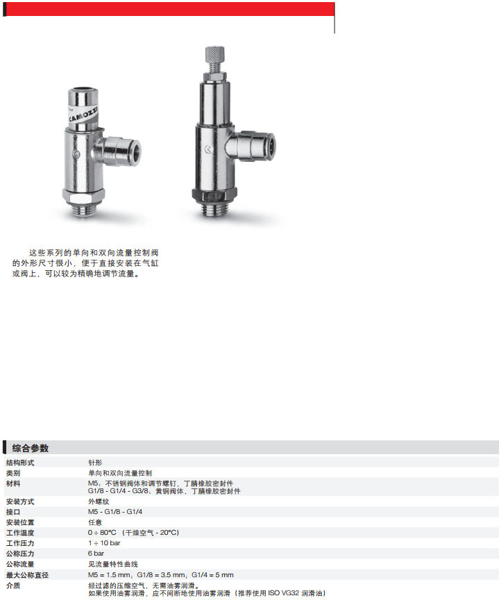 GMCU813,GMCU913,GMVU813,GSCU913,GSVU806,GSCO806,GMVU903,GMCO805,camozzi流量控制閥