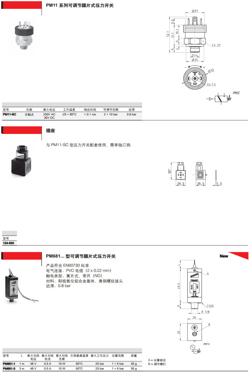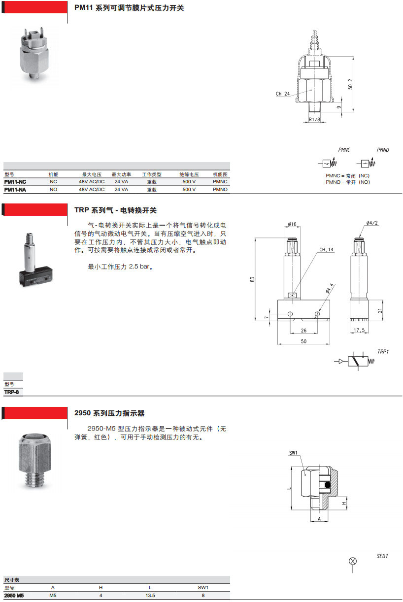 PM11-NC,PM11-NA,TRP-8,2950-M5,PM11-SC,124-830,PM681-1,PM681-3,camozzi壓力開關