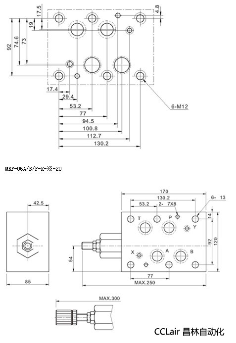 四、MRF疊加式溢流閥安裝尺寸: