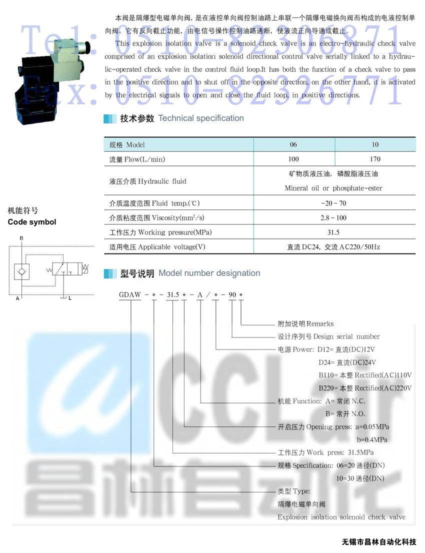 GDAW-10-31.5a-B/B220-90,隔爆電磁單向閥,昌林隔爆電磁單向閥,隔爆電磁單向閥生產(chǎn)廠家,隔爆電磁單向閥價格,
