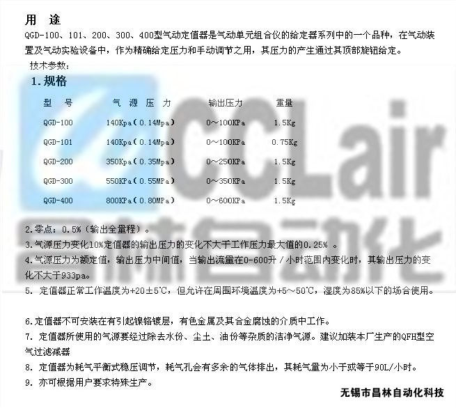 QGD-100,QGD-200,QGD-300,QGD-400,氣動(dòng)定值器
